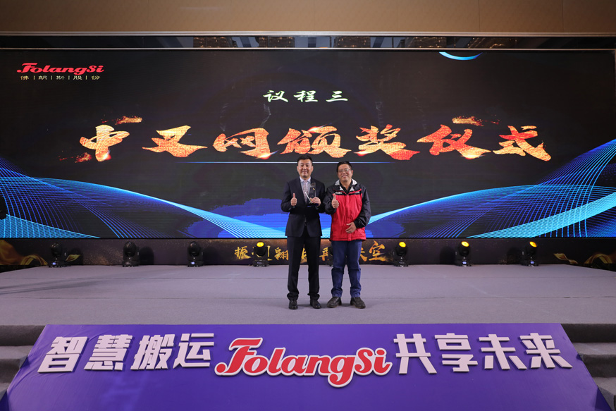 Folangsi won the award of "core strategic partner and industry outstanding service provider", The deputy general manager of China Forklift Network Mr. Zhang Minsheng,awarded the trophy to the general manager Mr Hou Zebing and delivered a speech.This is the pride of the Folangsi,it is the industry's full recognition and affirmation to us, and also the Results of all Folangsi people,who have been persistently working in the field of forklift!